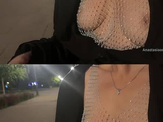 A Young Beautiful Exhibitionist Wife In A Transparent Dress Shows Her Pussy And Ass In A Public Park