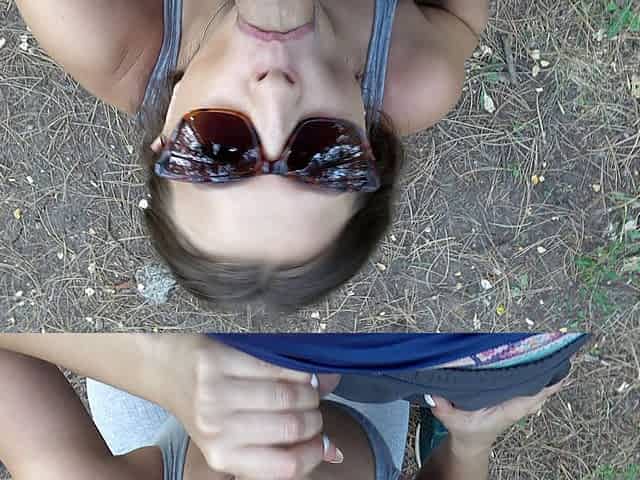 18 year old teen outdoor blowjob! The young took off her panties and sucked a dick in the park! POV!