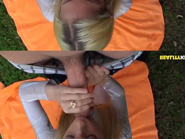 Slutty teen chick goes for a walk in the park with her boyfriend. In the park, she went down to her knees and started slurping o
