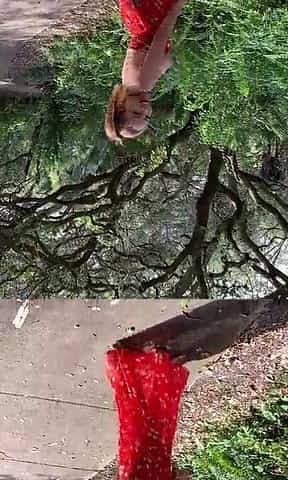Park walk in sexy panties and red tights