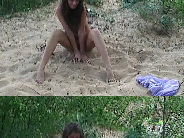 Blonde cutie, Alison Angel, pleases herself with fingering in a park