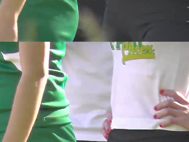 Cheerleaders down blouse on park