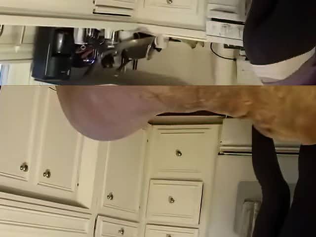 Woman in gray leggings cameltoe