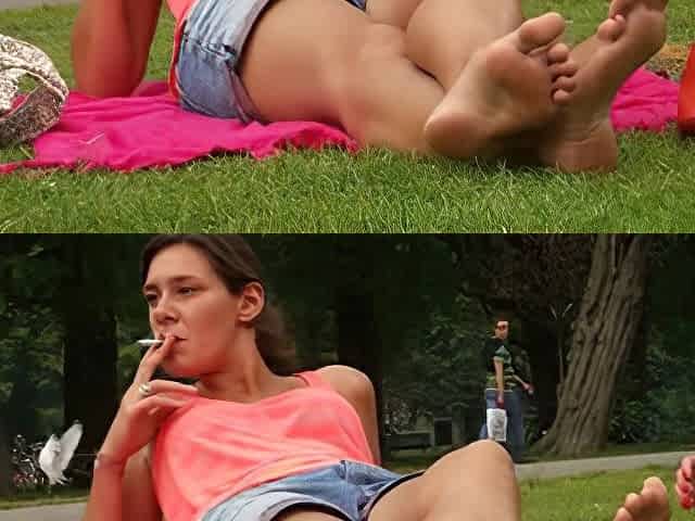 Luxury pussies were filmed in the park on the spy camera