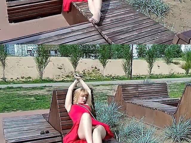 A spy in the park on a marvelous honey in red, mmm strings go aside...