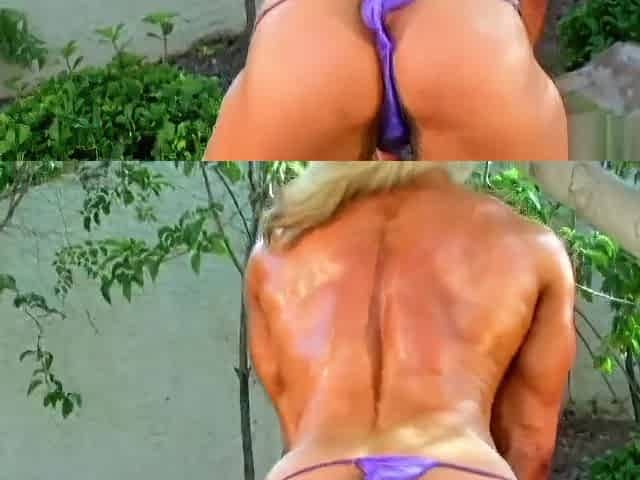 Blonde Muscular Woman has fun at park