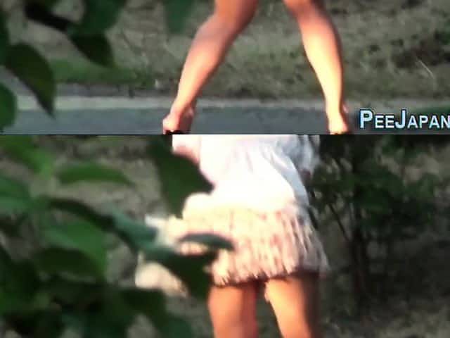 Asian teen pissing park