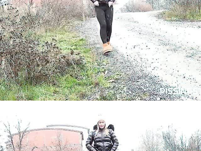 Gorgeous blonde babe Naomi Bennet is enjoying pissing outdoors