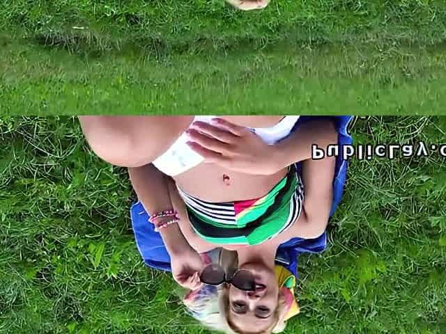 Pretty Eurobabe Flashes Tits In The Park For Some Money
