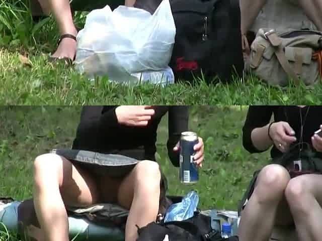 Naughty girl exposes her pussy in public while having a picnic in the park