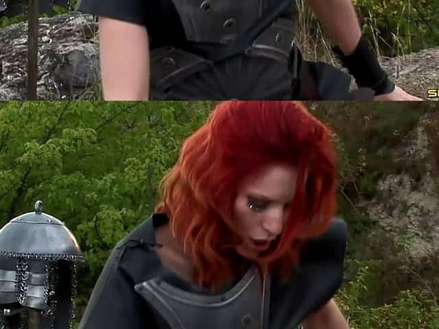 Redheaded soldier girl anally fucked on the battlefield
