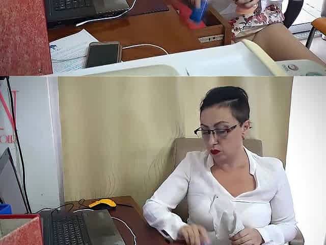 Woman secretary gets screwed with a sextoy. in the office Part three