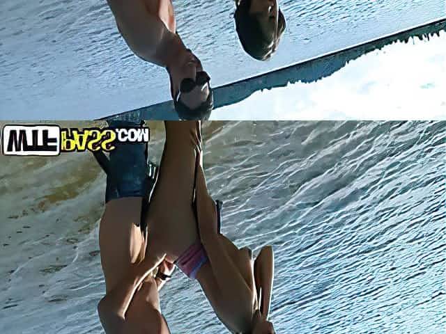 A girl rubs her butt against a man's dick at a beach in reality video
