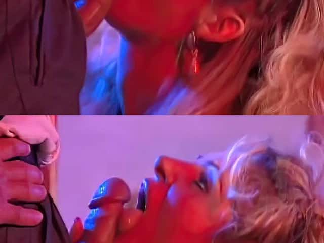 Rae Lynn sucking a BBC for cum during a gang bang