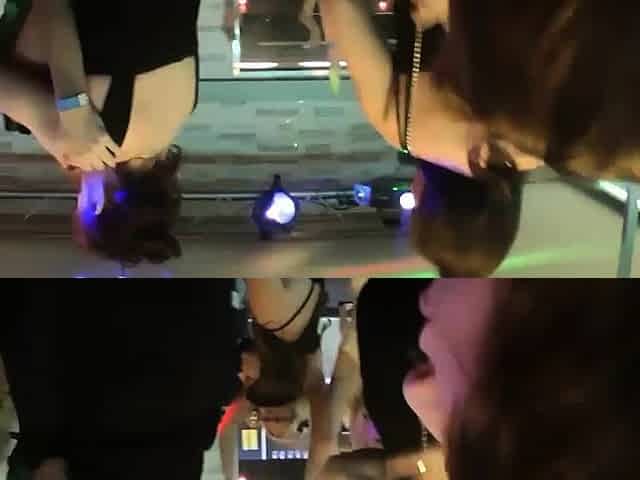 Younger chubby and older gal at sex club party