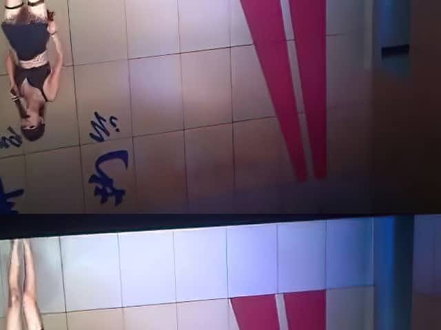Sexy oily babe masturbating on public stage