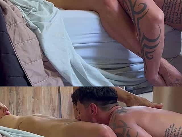 Passionate Asian Beauty Rides Tattooed Hunk in Bedroom