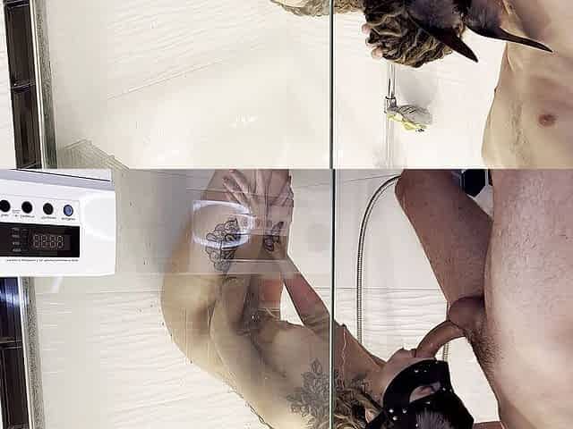 Perfect babe blowjob and passionate doggy fucking at the mirror