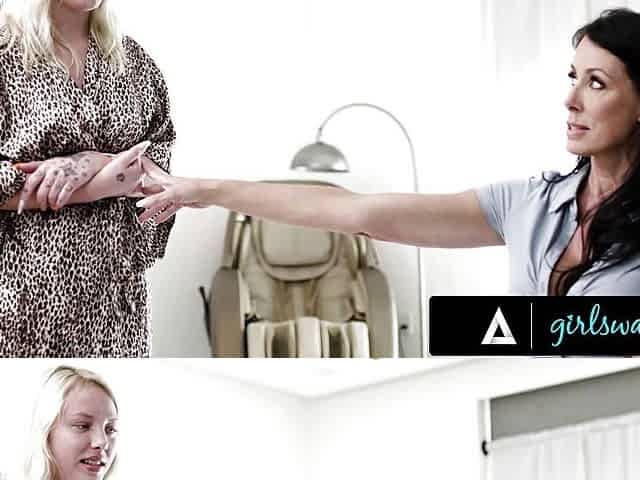 GIRLSWAY - Passionate MILFs Reagan Foxx And Rachael Cavalli Eat Poor Girl's Pussy After Helping Her