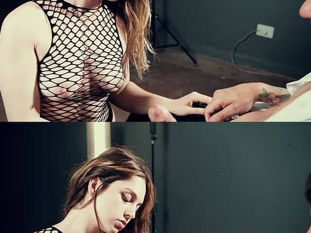 Biggest titty Jenni bows over for dick on hotel casting