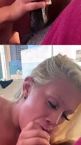 White PAWG Deepthroat BBC Interracial Blowjob on Hotel Couch