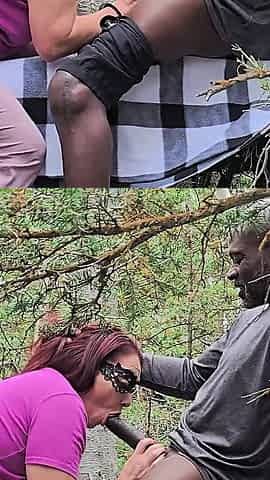 Big Ass Ebony Babe Banging Her Big Black Cock Gardener in Public!