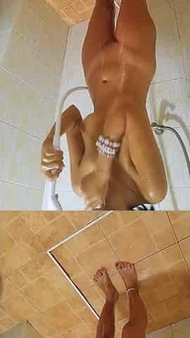 Intensive squirts of hawt cutie in gym washroom nearly caught by instructor