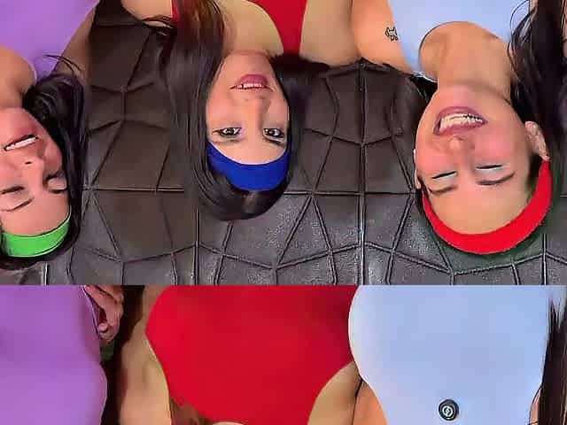 Vehement anal invasion with three beauties riding one dick