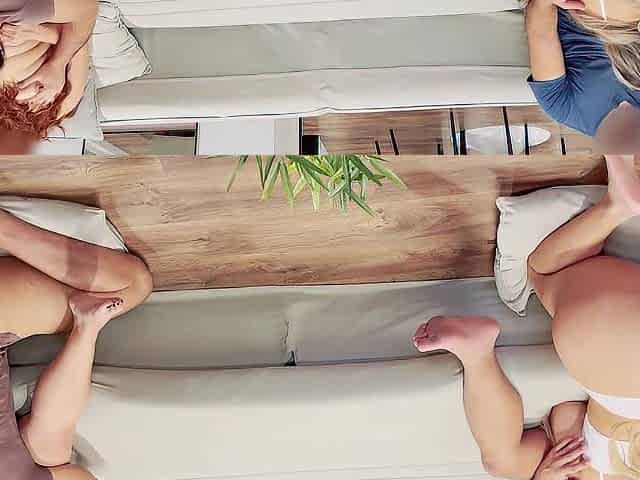 Kinky Ginger With Sexy Piercings Giving A Perfect Handjob & Footjo