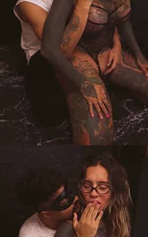 Descubro a mi hermanastra follando con su muñeca lesbiana y me invita a follar