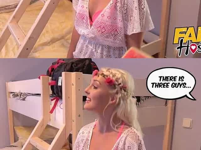 Fake Hostel Pretty and pert free loving hippie teen fucked in her room