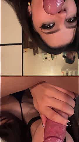 I painted her lips , took it off with my cock and finished it inside her throat
