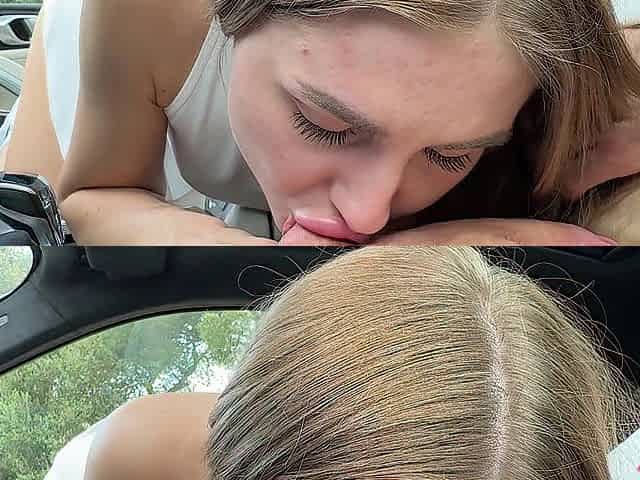Ginger Skinny Teen with Perky Boobs Plays with and Sucks a Big Dick