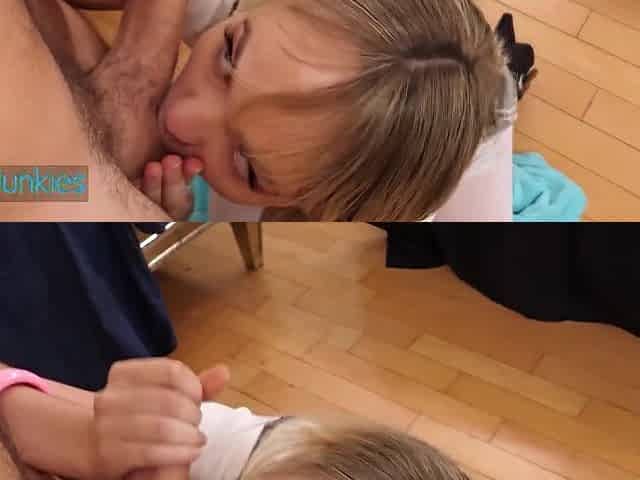 Barely legal babe with nice perky tits gives great blowjob and then gets fucked