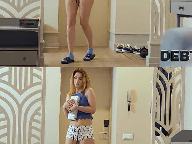 DEBT4k. Hotty desires to keep toys so that babe assents to have sex with collector
