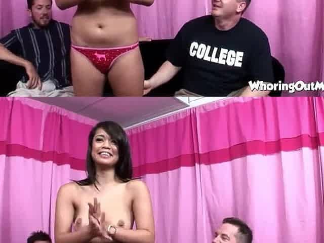 Thai hottie with perky attitude thumbs up after hotel fuck
