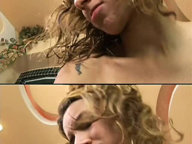 In the shower, the sultry blonde with perky tits Rayanne gets fucked in both holes