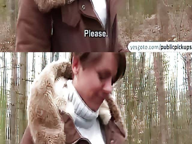 Perky blond amateur fucks in woods