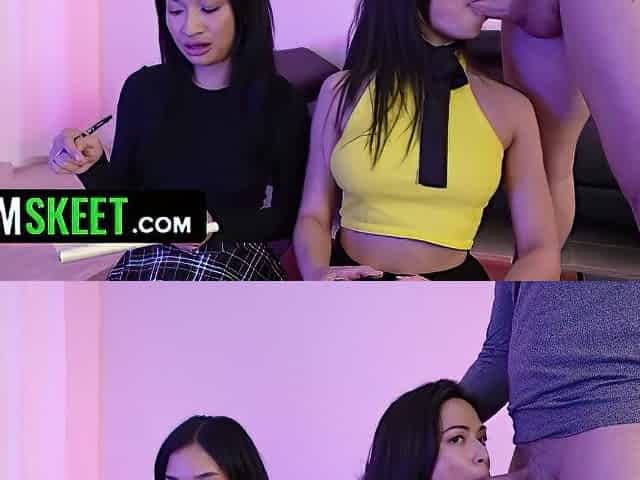 Asian Babe With Small Perky Tits Gets Her Pussy Eaten By White Stud