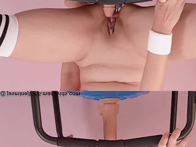 Oriental Gal With Buttplug Gets Bang by A Screwing Machine Until Squirt and Pee All Over the Floor