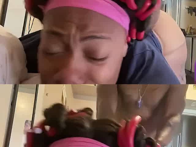 Large Booty Nympho Nina Kayy dunks her Trainer's large ebony balls in her own wet soaked hoop!