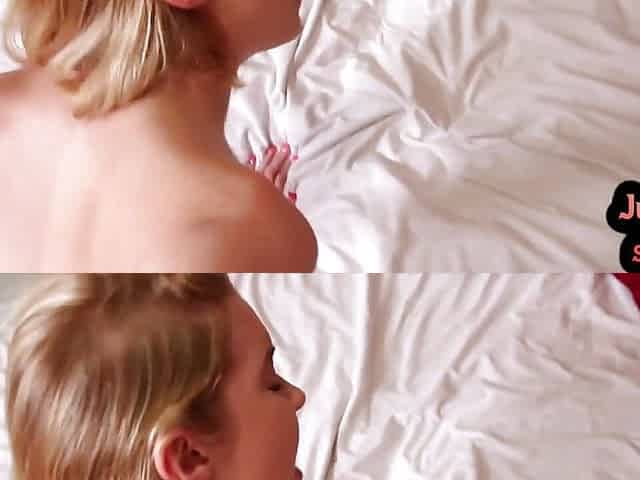 POV video of fit blonde girl with the best ass getting a phat facial on her pretty blue eyes