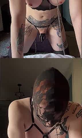 nippleringlover horny milf dildo in locked pierced pussy chained pierced nipples body oil tight ass