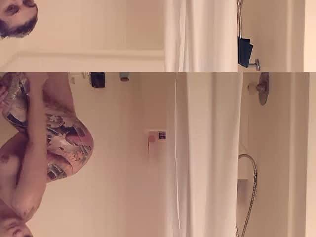 Watch a heavily tattooed model shower by herself