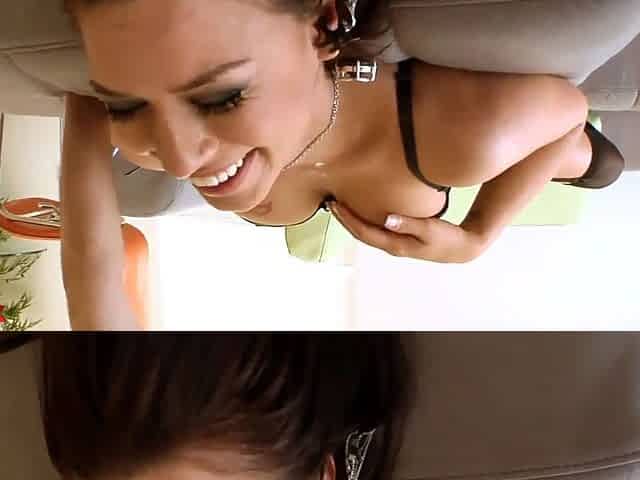 Beautiful Eva Angelina in glasses getting a three-way handle