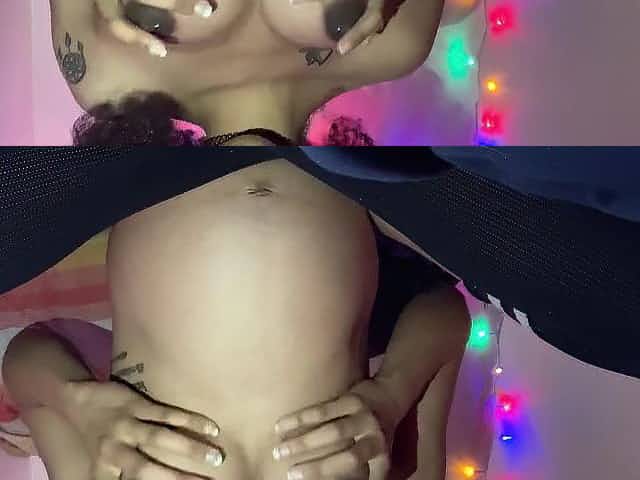 Playing with my pierced gestation tits