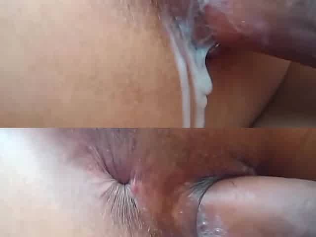 An intensive screwing with a short babe ends up with a cumload into her booty in the piledriver position