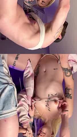 Strokies - Blond with pierced teats and tattoos gives a titty screwing spunk flow
