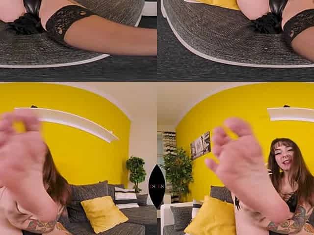 Hot Chick In Black Lingerie Cums On The Couch - VRSexperts