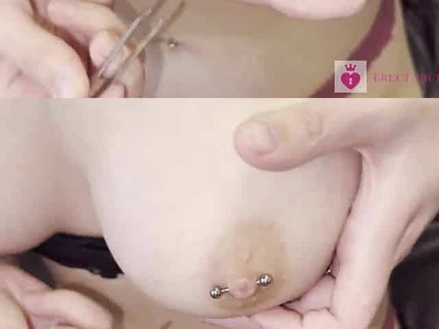 Teat piercing hair removal with tweezers! Close-up! POV!